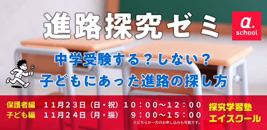 またエイスクールでは親子で「中学受験」「進路」を探究する講座「進路探究ゼミ」を年2回開催しています。