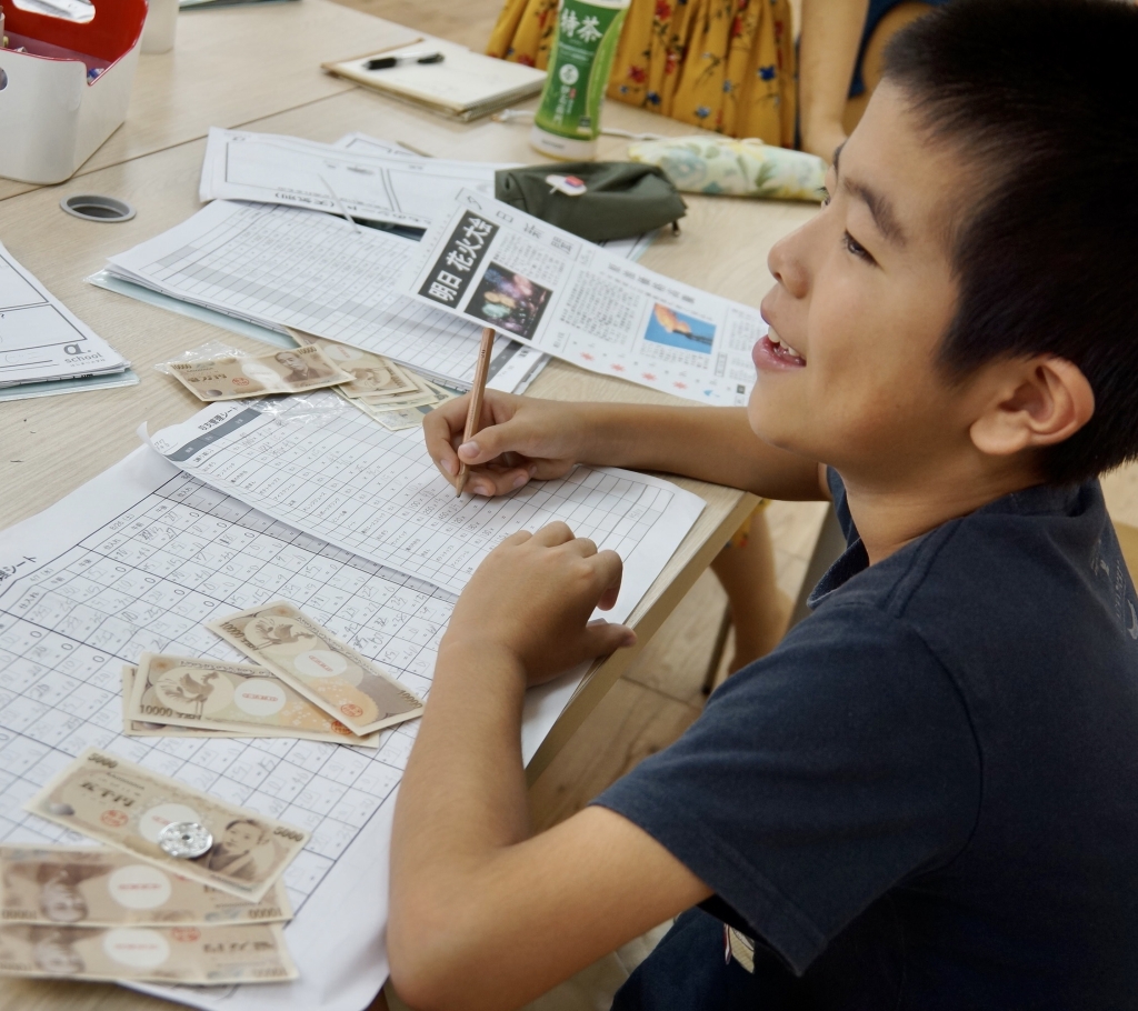 まずは「お仕事ってこういうことなんだ!」という体験そのものが中心です。たとえば「いくつ仕入れたら足りる?」「どっちが多い?」「いくら残った?」といった、身近な数量感覚や比較の感覚を使いながら、仕事の世界を動かしていきます。この段階では、計算の正確さ以上に、数を使って考えることが“面白い”と思えることが大事です。