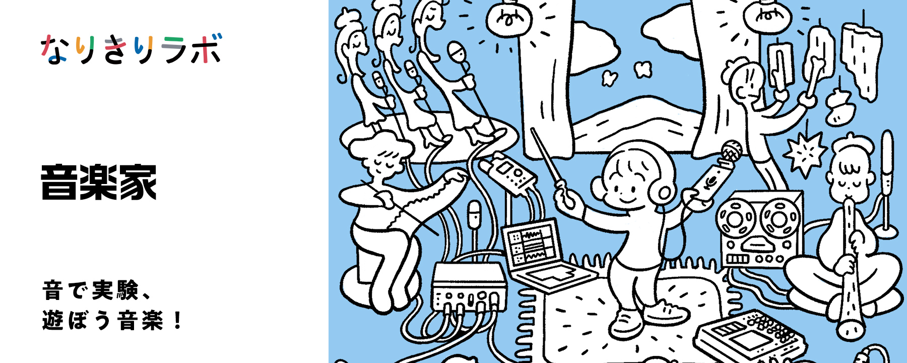 なりきりラボ「音楽家」は、日常にあふれるさまざまな「音」の可能性に気がつくことからスタートし、音が音楽になるまでの道のりを探究します。
