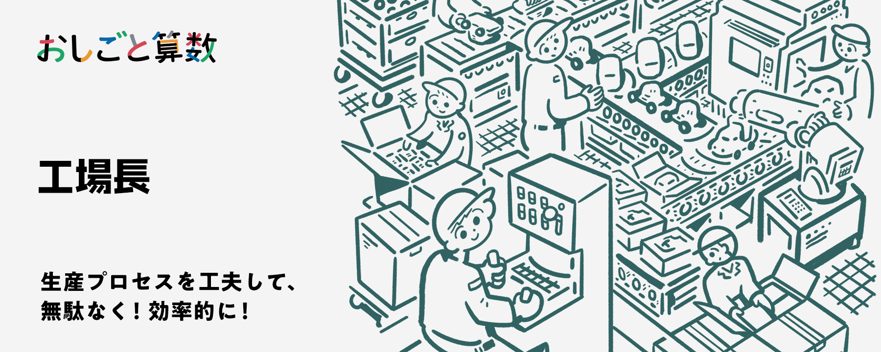 おしごと算数「工場長」は、四則計算を基本とした算数を総合的に活用するチカラを養い、頭も身体も使いながら暮らしにもいきる効率的思考を育みます。