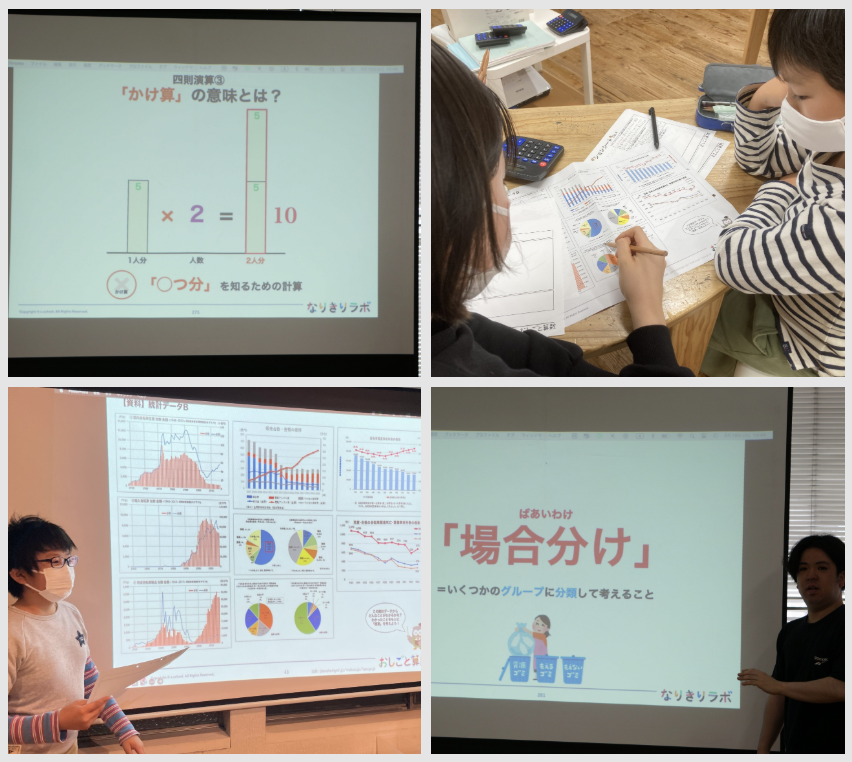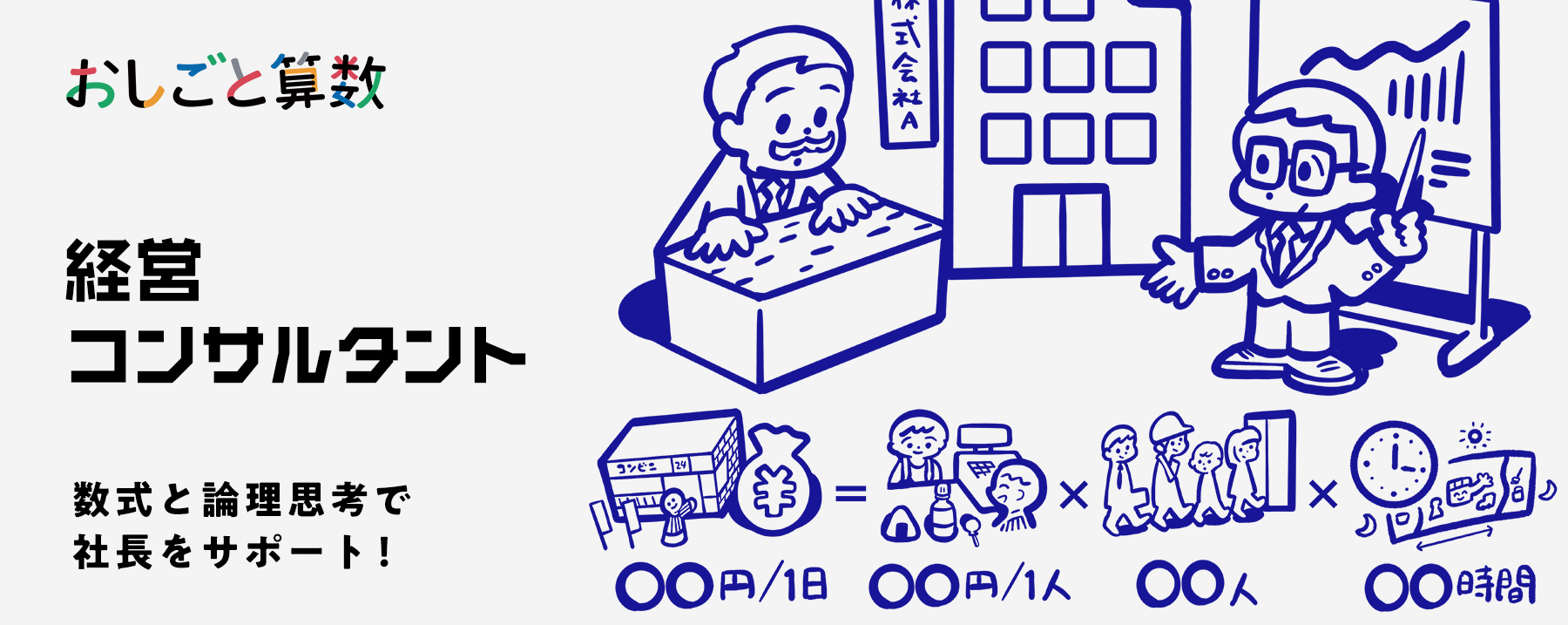 おしごと算数「経営コンサルタント」は、小学校で習う計算式を駆使し、数を推定するチカラ・データの裏に隠れた意味を読み取る力を育みます。